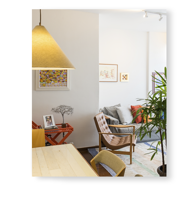 A cliente fez um único pedido: vamos aproveitar ao máximo os móveis do antigo apartamento no novo espaço. Tirei a medida de absolutamente todos os móveis e aproveitamos quase tudo. Acho que somente as luminárias, o quarto da nova filha que estava para chegar e a marcenaria do quarto dela foram novos. Nos demais espaços conseguimos aproveitar o que ela já tinha, inclusive dando novos propósitos para os móveis. Um espelho que ficava na horizontal em cima de um aparador foi para a sala de jantar, de frente para a entrada do apartamento, mas na vertical. A posição foi estratégica para dar aquela sensação ilusória de espaço maior. O aparador, por sua vez, se transformou em um rack e assim fomos reaproveitando e dando novos usos aos móveis. O espaço ficou charmoso e aconchegante.